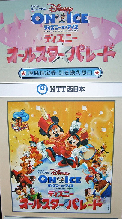 ◆左:ディズニーオンアイスNTT西日本引換所看板