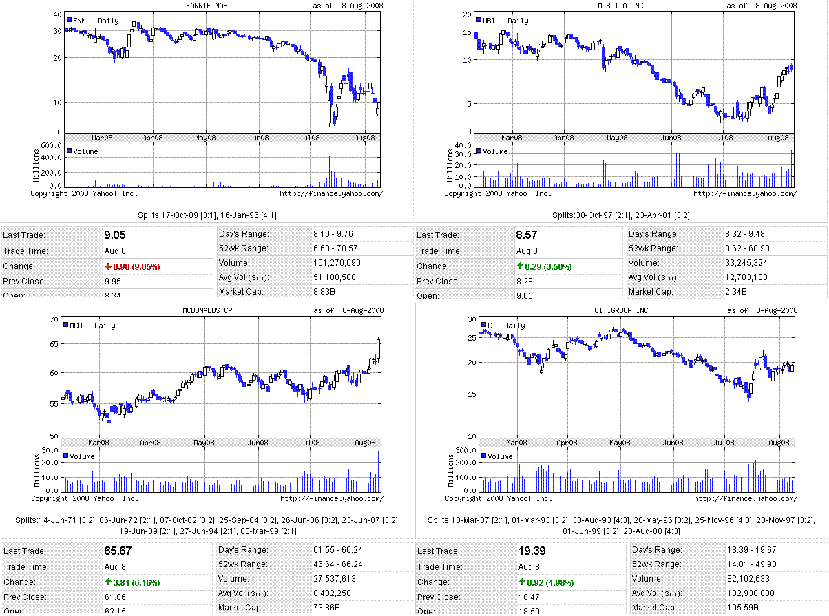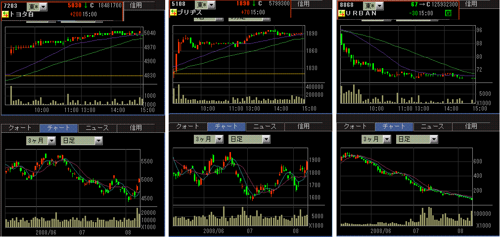 ユーロ安ドル高が進んだことにより原油価格が下落。これを好感して、輸送株や小売株中心に買われ、米株価指数は大幅高となりました。ファニーメイの決算は、赤字幅が市場予想を大きく上回りましたが悪材料視はされず。住宅市場は相変わらず厳しいようですが、株価指数はしばらくはレンジ内で上がったり下がったりフラフラするのでしょう。