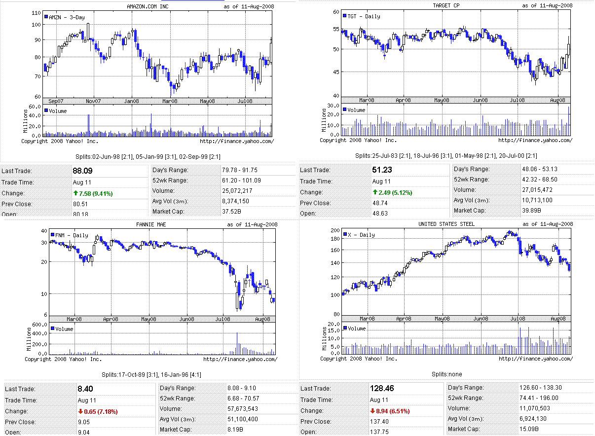 ファニーメイ、フレディマックの株価はじりじりと下がっています。鉄鋼株も日本と同様、弱い動きです(画像1、右下)。