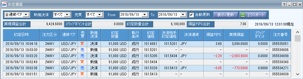 短期決戦の実況FX+7pips20160913
