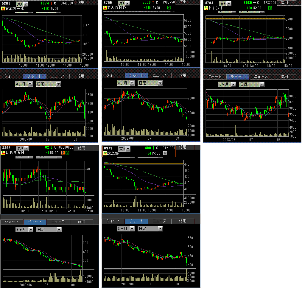大物があっさりと・・・。まさかアーバンがこんなに早く倒産するとは思わなかった。しかし、今週に入ってからの株価の動きや空売りの入り方は漏れ漏れな感じでしたね。取引先の広島銀行の動きもなんだかね。