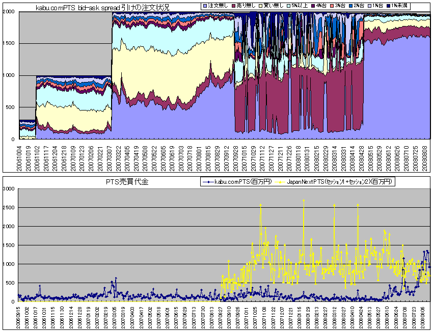 kabu.comPTSの引けの注文状況と、売買代金のグラフです。