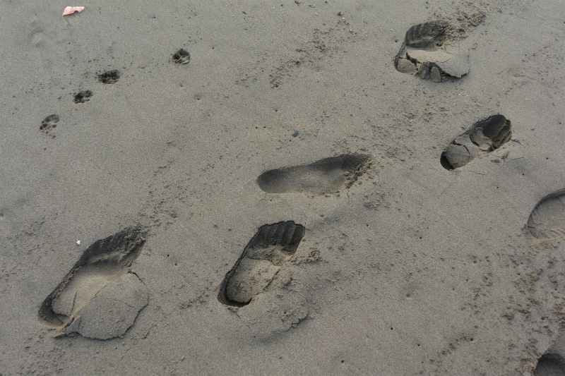 っで、写真はおらが目を奪わりた美人サーファーの裸足の足跡です