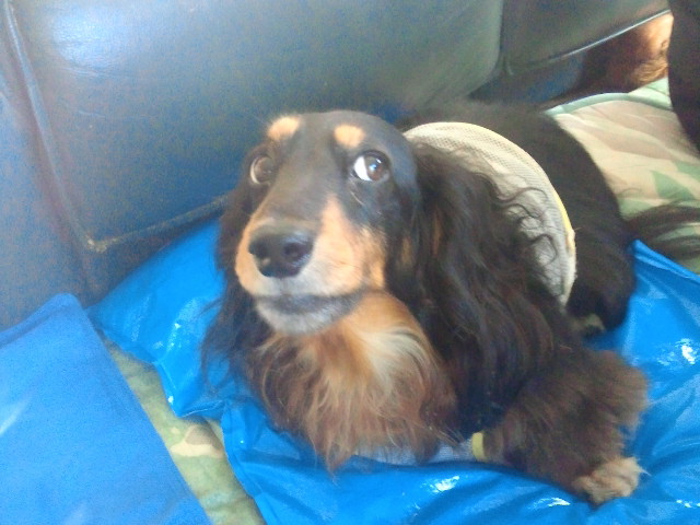頭を丸め??黄緑とブルーのマットのお願いをする。