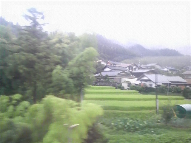 「木曽路は全て山の中である…」という書き出しで始まる島崎藤村の名作、『夜明け前』。今日は好評の(…ん?誰に好評…?)影さんぽシリーズ第2段、木曽路の写真をアップしようと思ったものの、あいにくの雨天だったので、車窓からの風景でござる。写真の写りが悪いのはお許し下され。