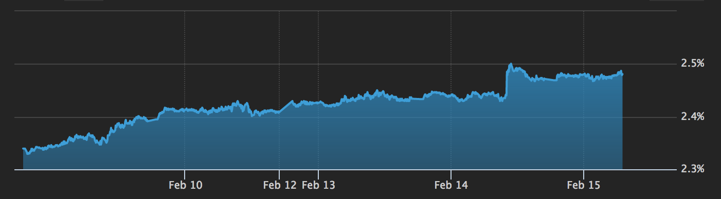 ↑米長期金利(10年国債利回り)は再び2.5%の大台を目指す動き。