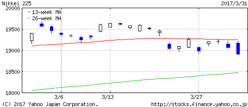 3/23(水)には、19000を割れ。
