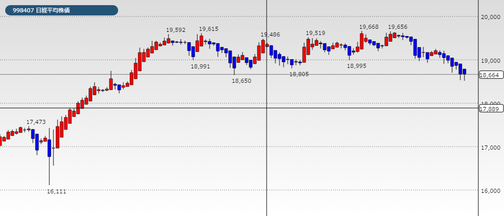 1109安16252~0104高19594~0313高19634~下げで現在18665です。