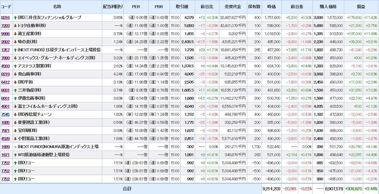 三井住友を利確しているのも関わらず増加しているのは良い傾向。