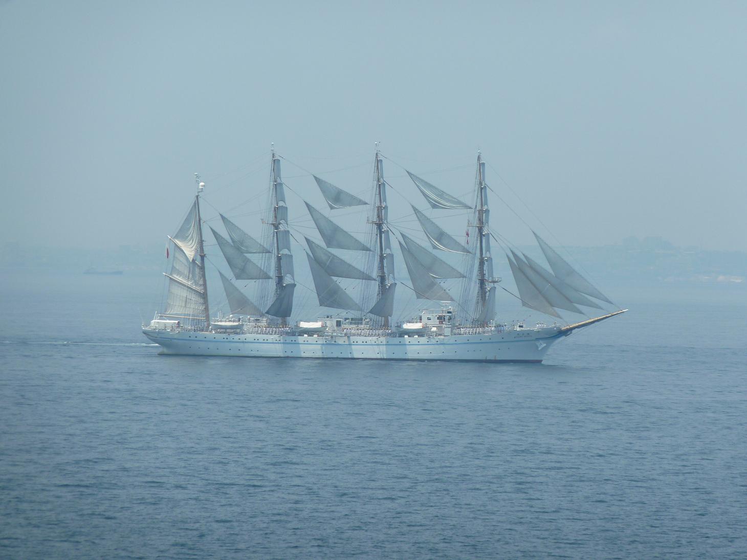 海上から帆船を見ると、陸上とは違った迫力がありました