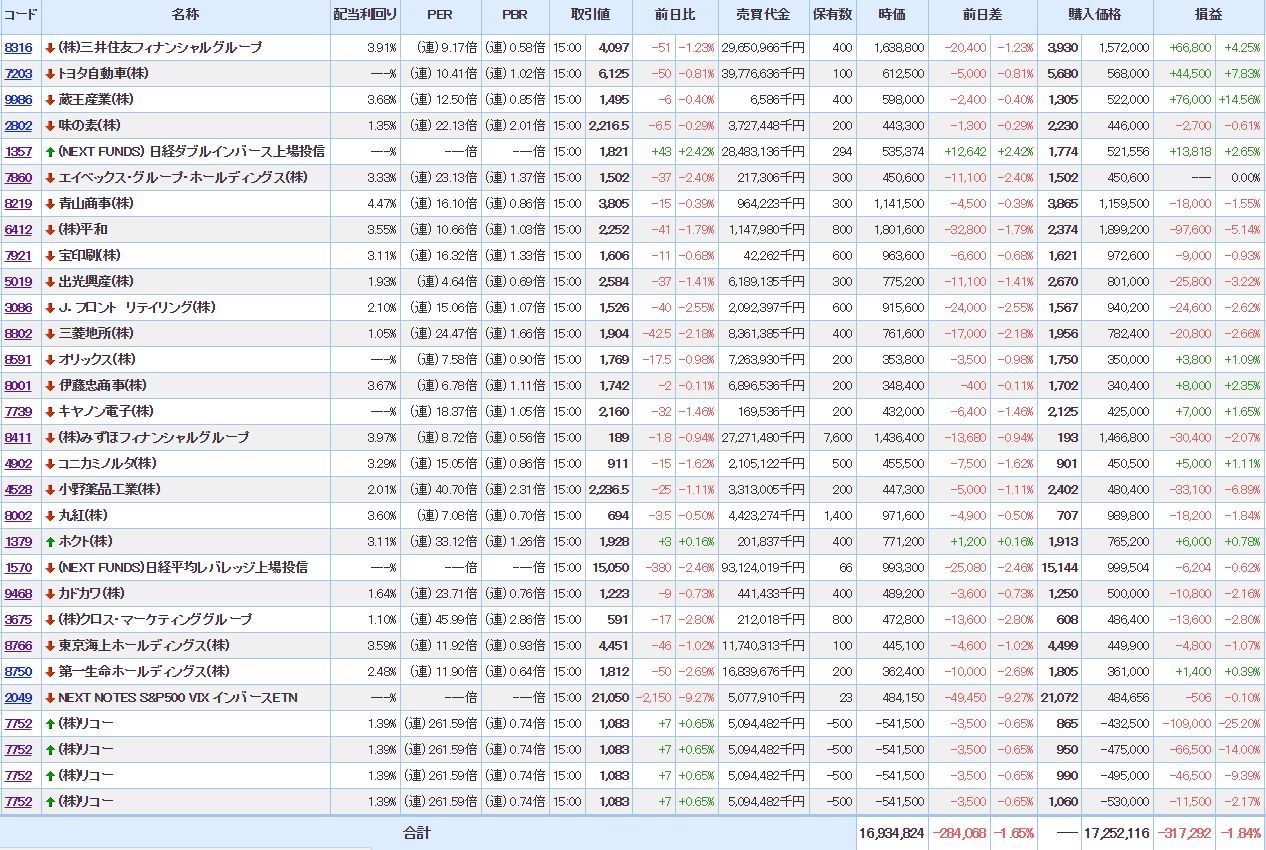 含み損:16銘柄(4増)