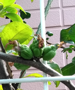 このほかに、ムベ(アケビの仲間)もあるのですが、まだ実をつけていません。今年はダメかなあ