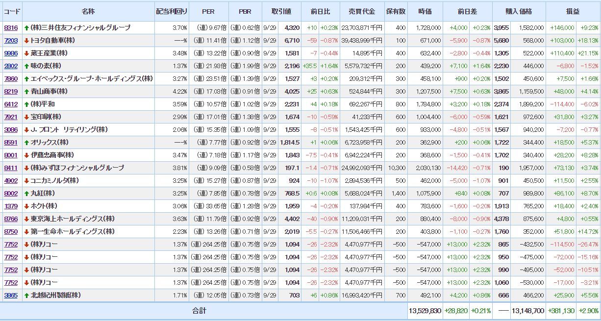 配当取りを意識し、9月末残高はやや多め。今後も利確を進める。