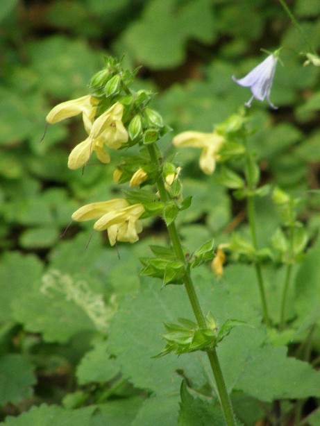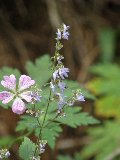 左からシラヤマギク(キク科)、キバナアキギリ(シソ科)、カワミドリ(シソ科)