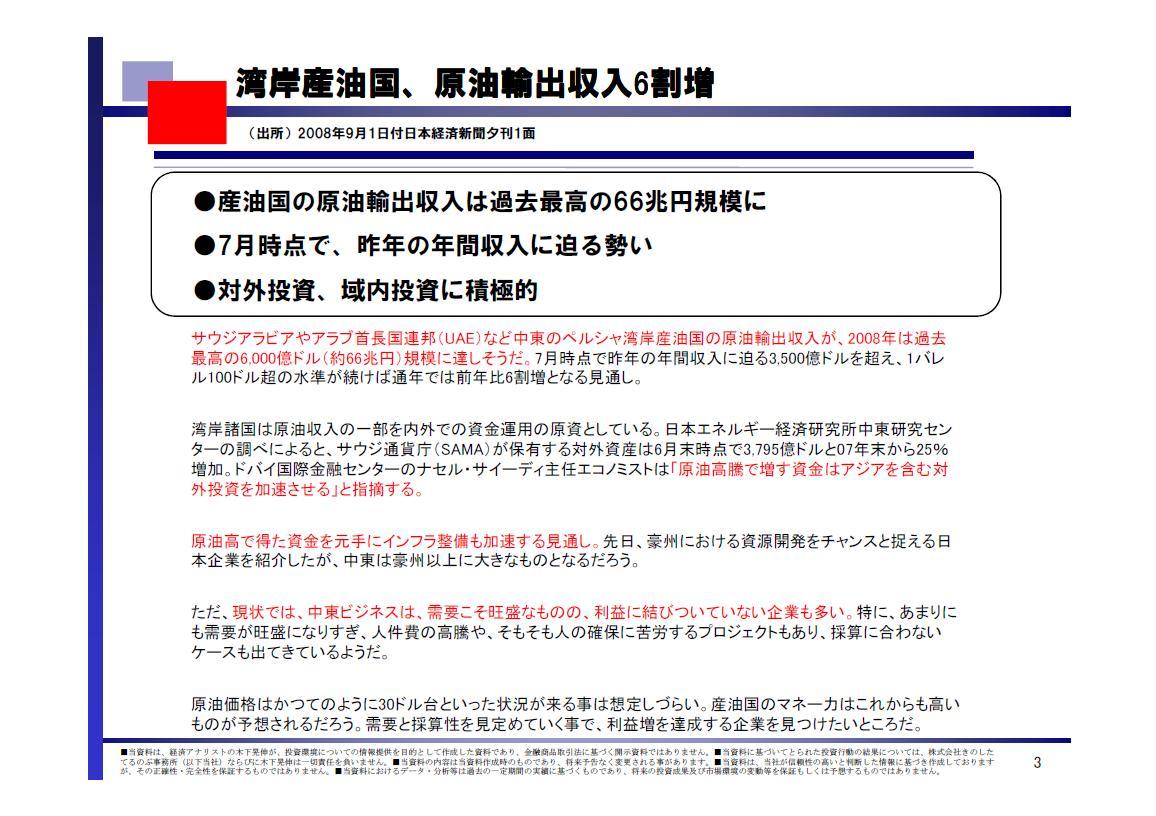 「原油高騰で増す資金はアジアを含む対外投資を加速させる」と指摘する。