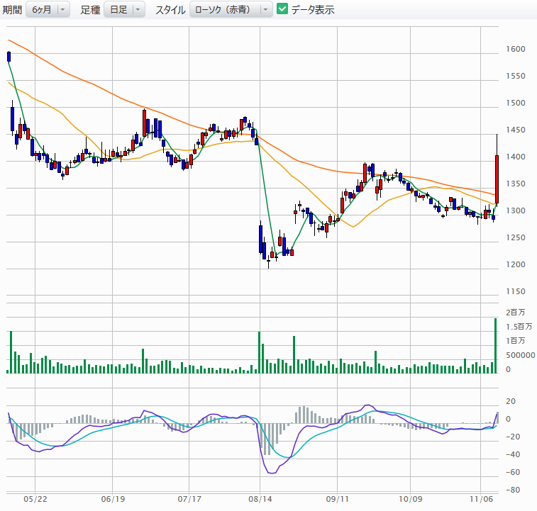 ここのところ右肩上がりになっていなかった銘柄から、チャートを見て判断。