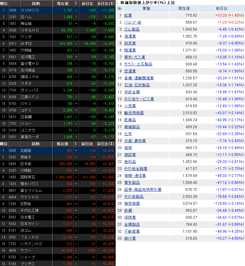 原油安メリットのある、ゴム、製紙は引き続き強かったです。資源高に賭けるようなポジションを取っていたところの手仕舞いもあるのかもしれません。
