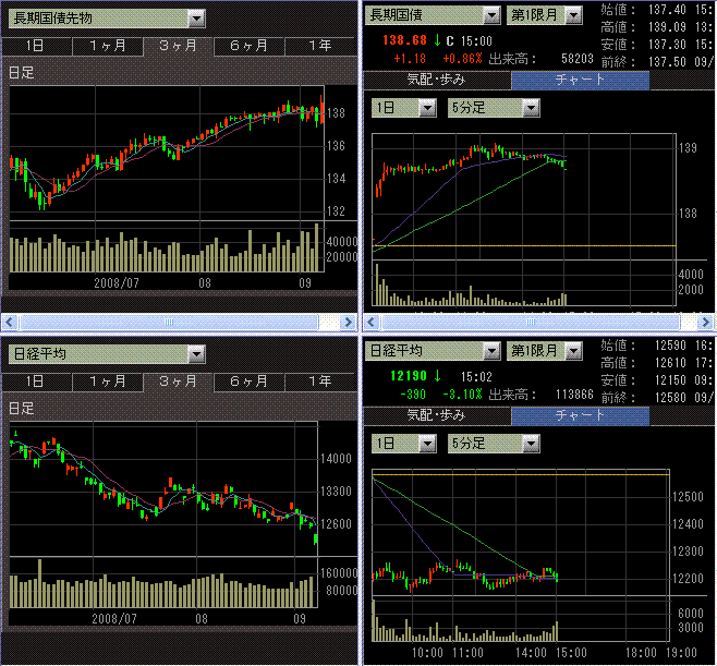 株式ロングショート型なら、商社・非鉄買い、ゴム・製紙売り、なんてポジションを取ってたんでしょうね。CTAの債券先物・株先物のペアトレードなどを見ても、一方向に賭けるファンドって全然"ヘッジ"じゃないよな~といつも思います。まあ、かくいう私も今週は盛大に股裂きを食らいましたが・・・。