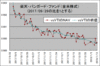 最近2ヶ月では、楽天ファンドはVTIと比べて0.1%程度成績が悪い。一番目の図の緑線の傾きが急すぎるということ。