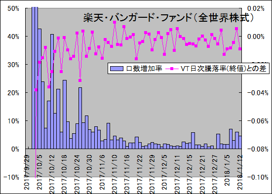 ・ファンド価格の騰落率と、VT終値の日次騰落率の差
