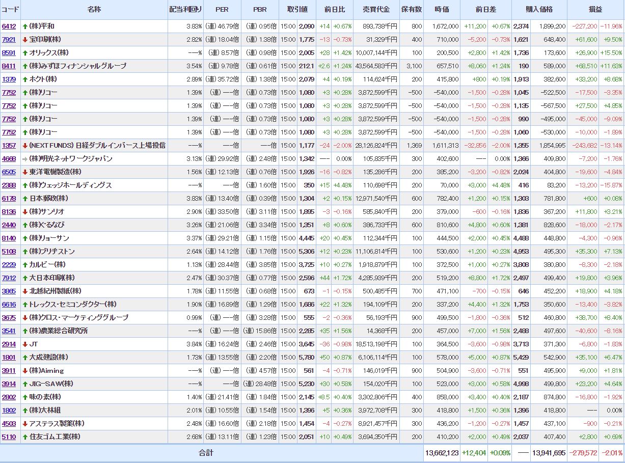 含み損:14銘柄(+1 )