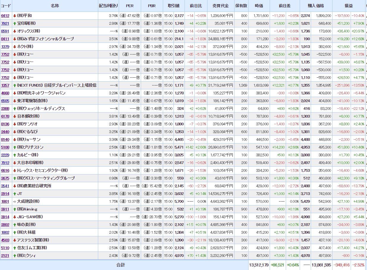 今日のマイPFは+0.64%・・・(以下本文参照)
