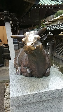 散策して私は一枚記念になる写真を撮りたいと思い湯島天神の牛を撮影し
