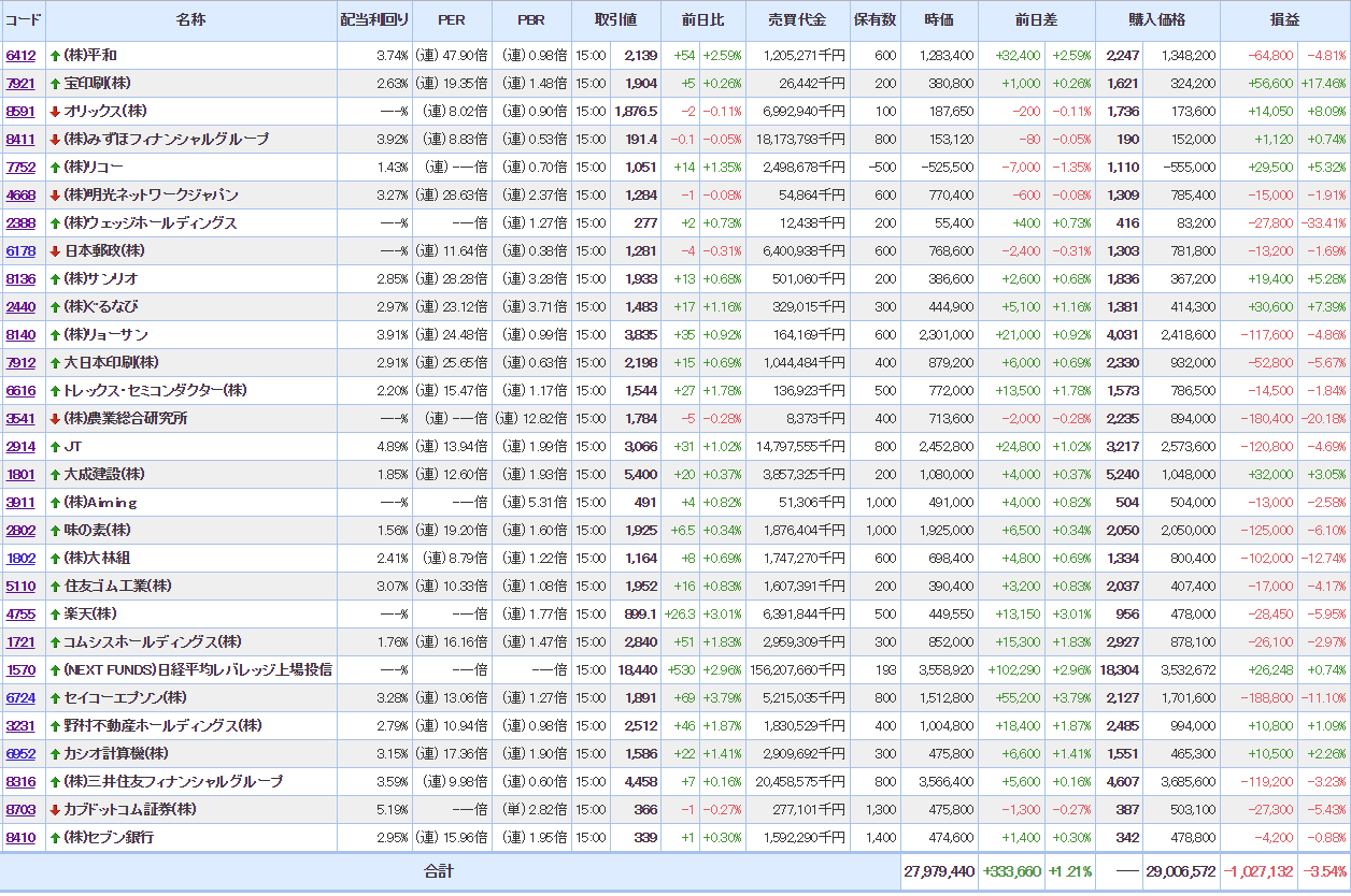 配当取りを意識した。配当概算28万円は損益に含めていないが、
