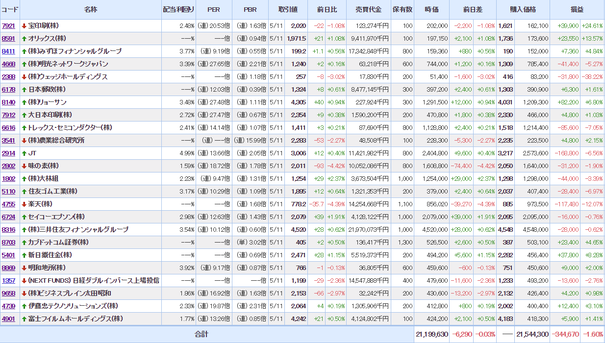 含み損:11銘柄(△3 )