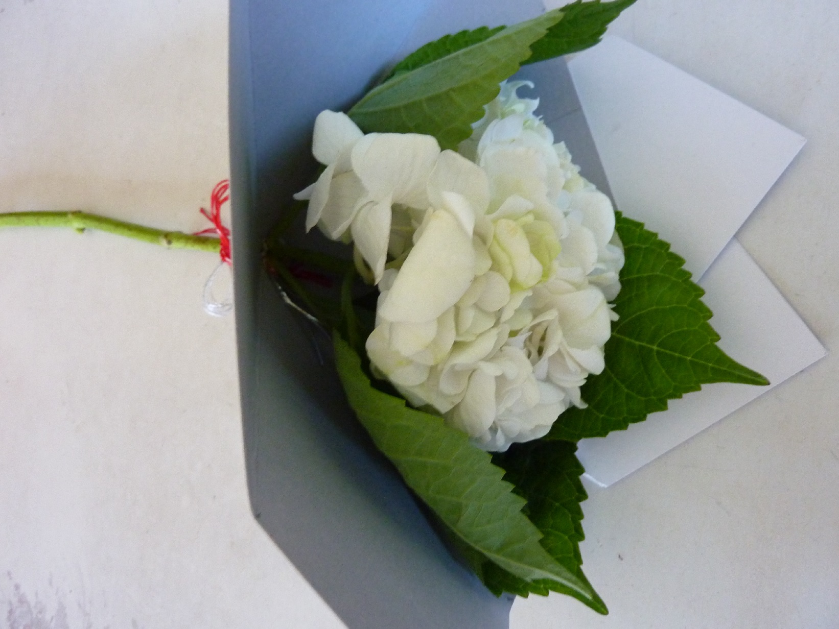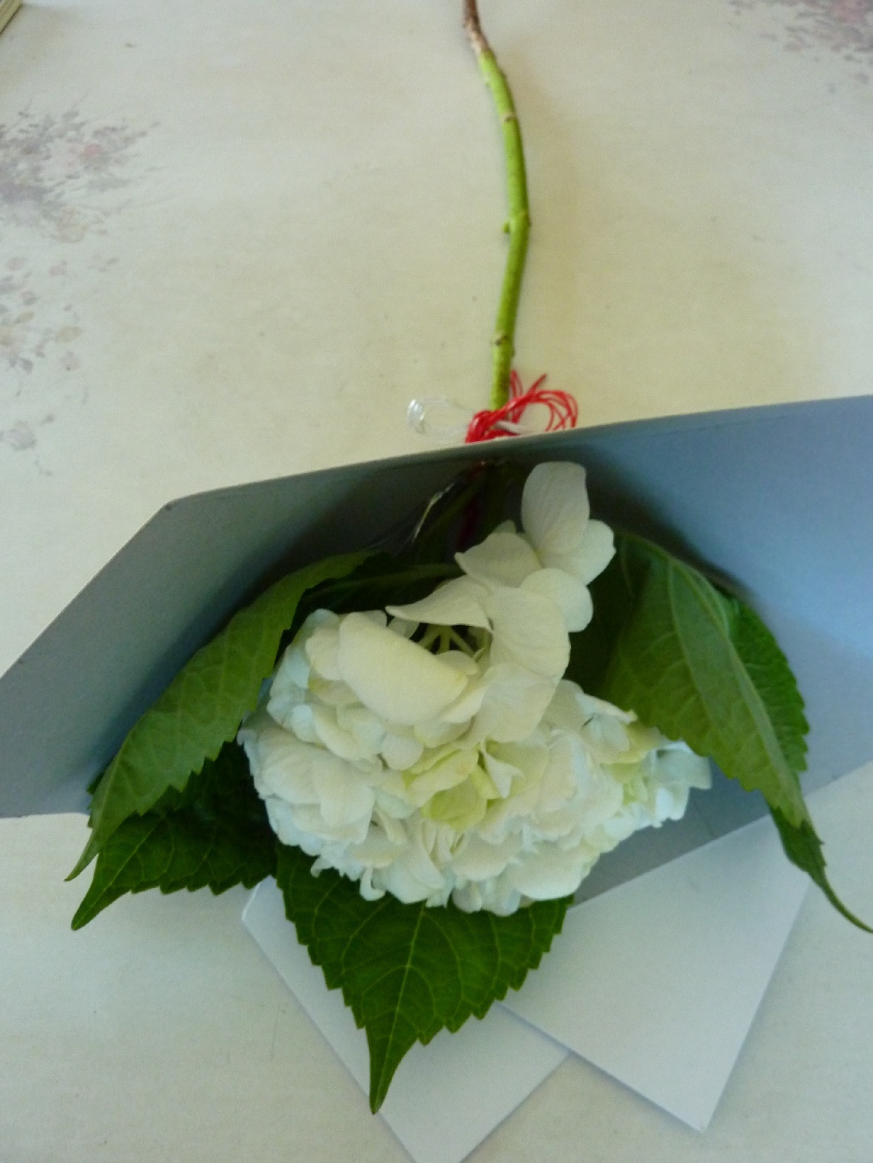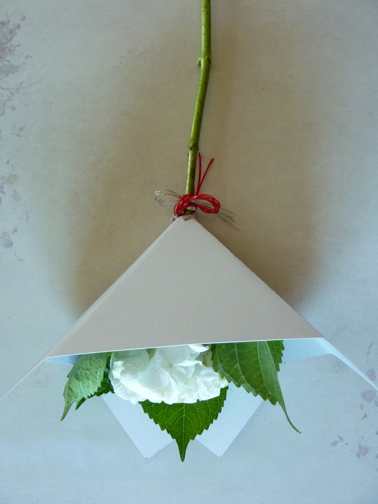 紫陽花を和紙などの紙に包んで、水引で結び、一年間吊るします。