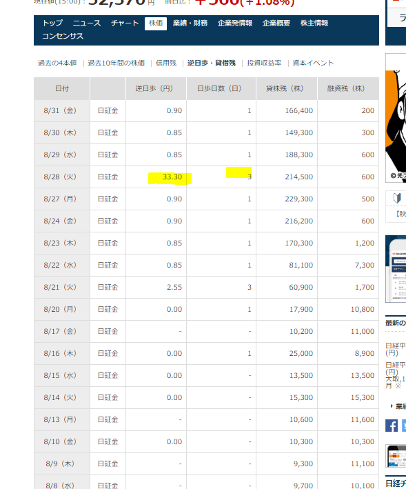 ファーストリテは8月第4週に貸借が逆転してますね。