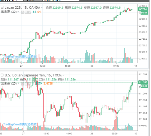 ダウもナスも先物上げてますね。