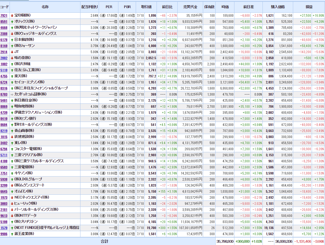 次の9月に向けて銘柄の入れ替えを図りたいところ。