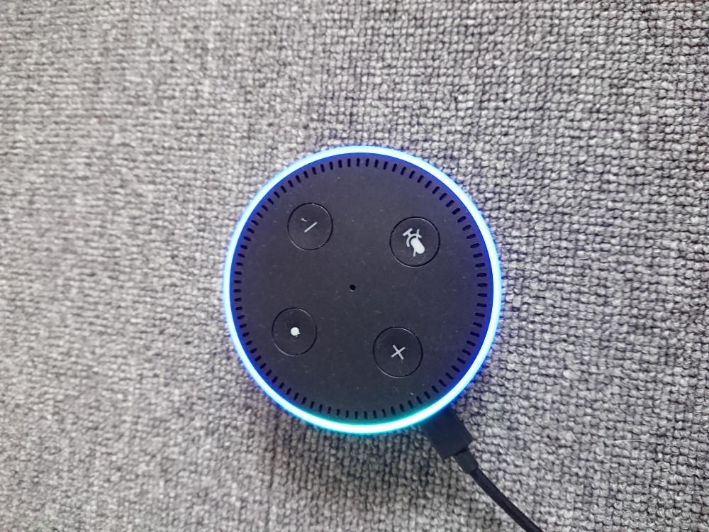 写真は数か月前に勢いで買った「AamazonEchoDot」です。