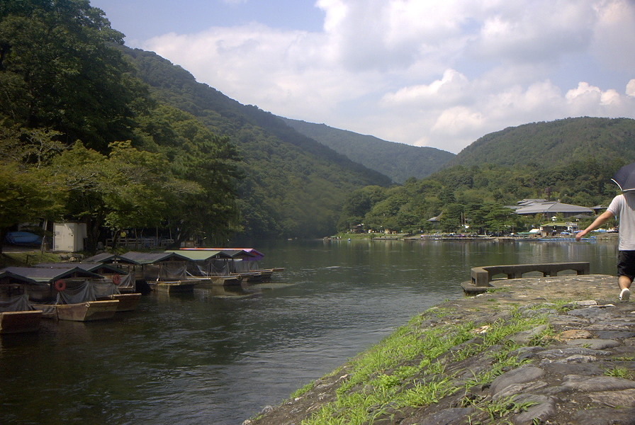 嵐山は子供達が小さい頃にはよく行ったものです。風景は今も変わらず観光客で賑わっており、水辺にはおしょらいさん(黒くて細身のトンボ)も群れていました。