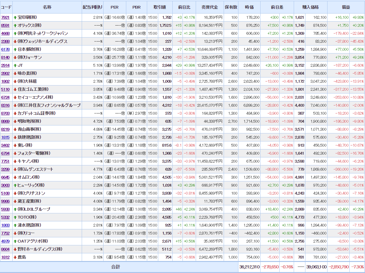 ・TOPIXは、1,735.35→1,684.31 約50円のマイナス