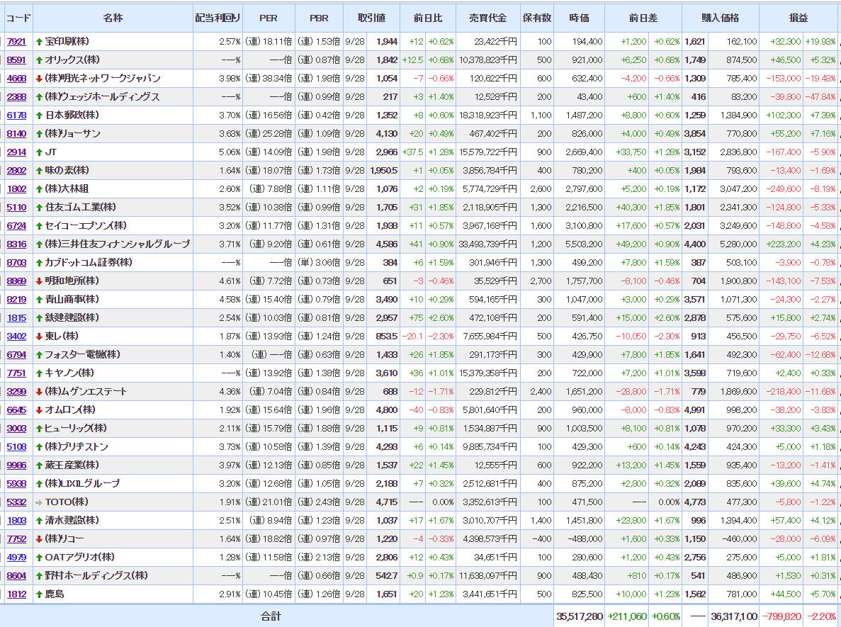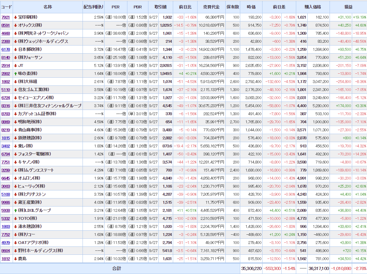 マイPFは相変わらず含み損状態だけど