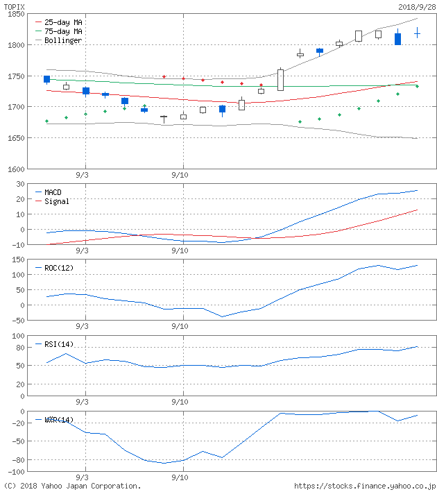 TOPIXは、下落から戻りきっていない。月間では下落。