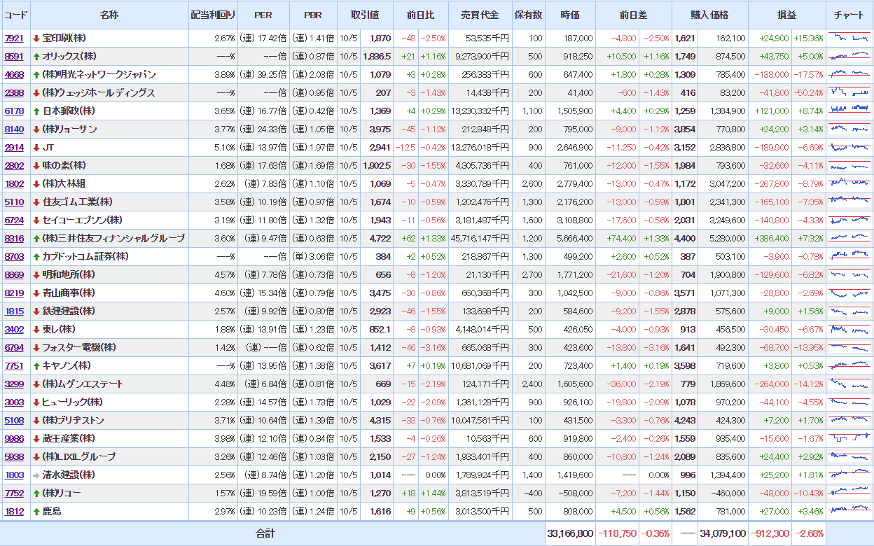 10/01-10/05:△ 799,820→△ 912,300 △112,480(実現益+55,637)×