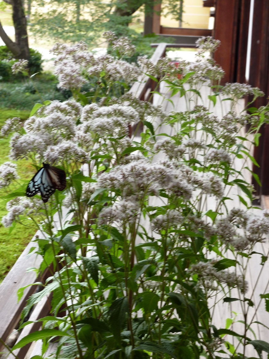 創流1200年になるそうです正寝殿に向かう廊下を歩いていると、上空に蝶が飛んでいました。