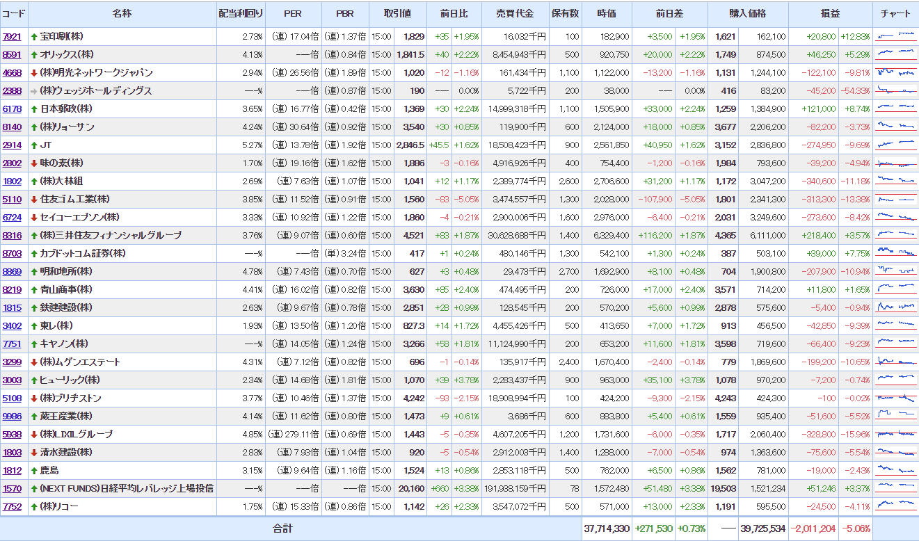 マイPFは、大幅に含み損を増加させ意気消沈状態。