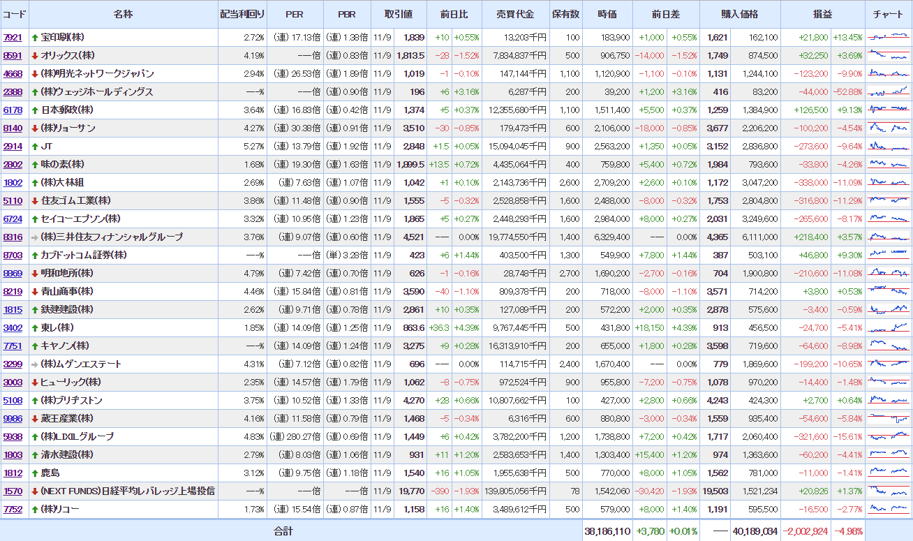 11/05-11/09:△2,362,468→△2,002,924+ 359,544(実現益+47,505)○