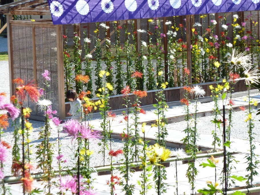 嵯峨菊は私たちがよく見る菊よりも、背がず~っと高いです。