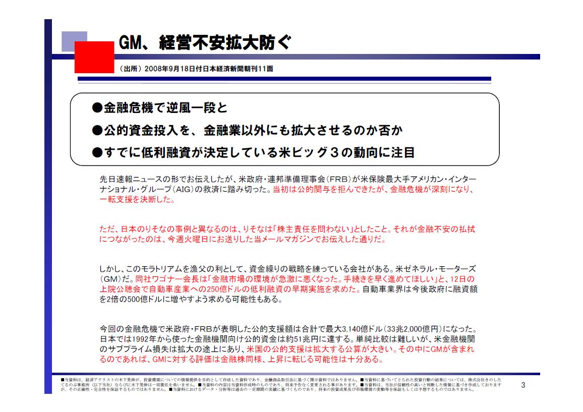 その中にGMが含まれるのであれば、GMに対する評価は金融株同様、