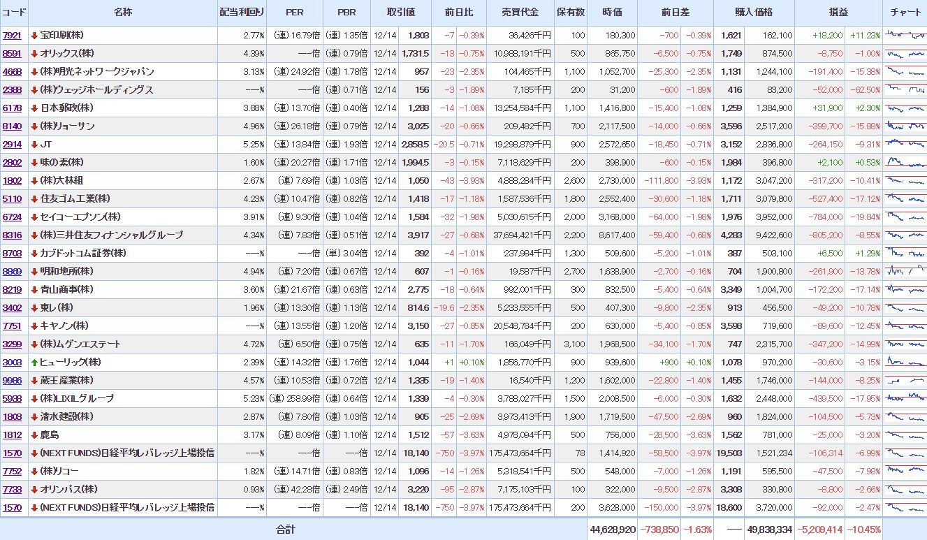 12/03-12/07:△2,604,834→△4,043,264△1,438,430(実現益+318,268)×配当+265,900