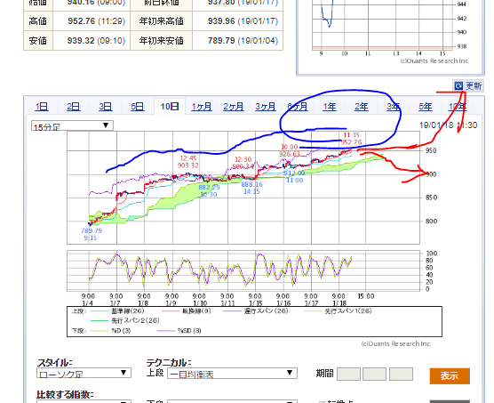 因みにマザーズ指数が940pt台の抵抗帯に突入したので