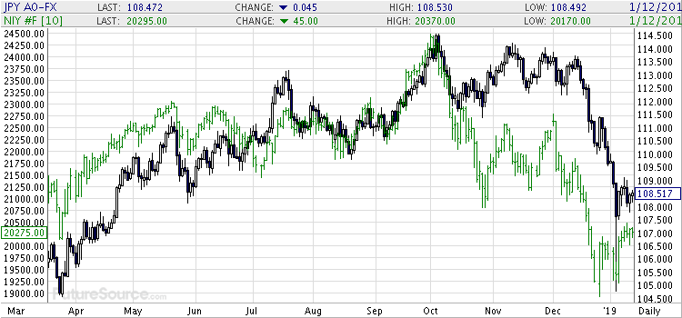 ドル円とCME-225の比較チャート。