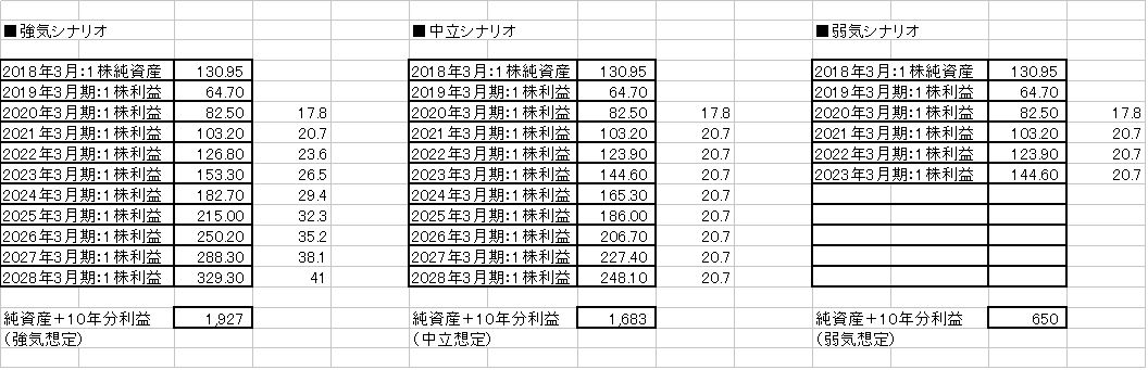 強気:1,927円(1株純資産+10年分の利益、現状の利益増加率が継続前提)