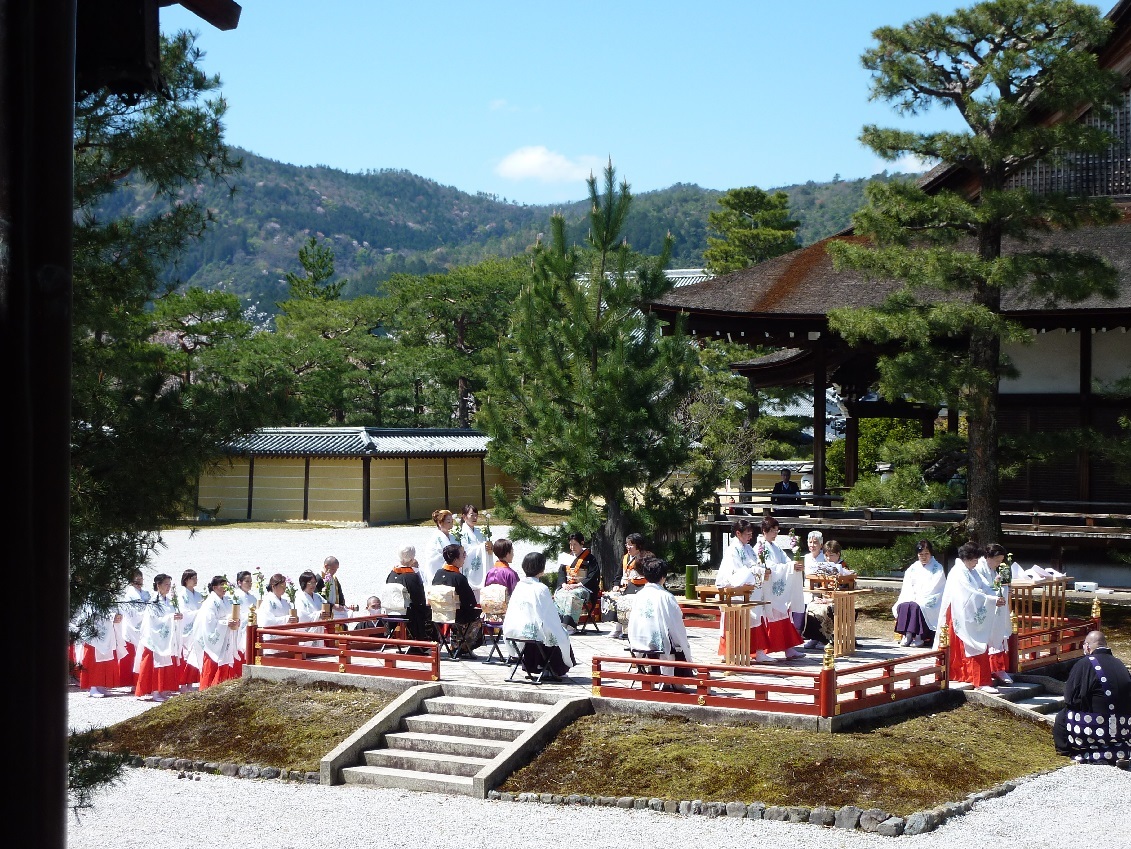紅白の千早(ちはや)を着用した供華侍者による「供華の儀式」を見ていると、
