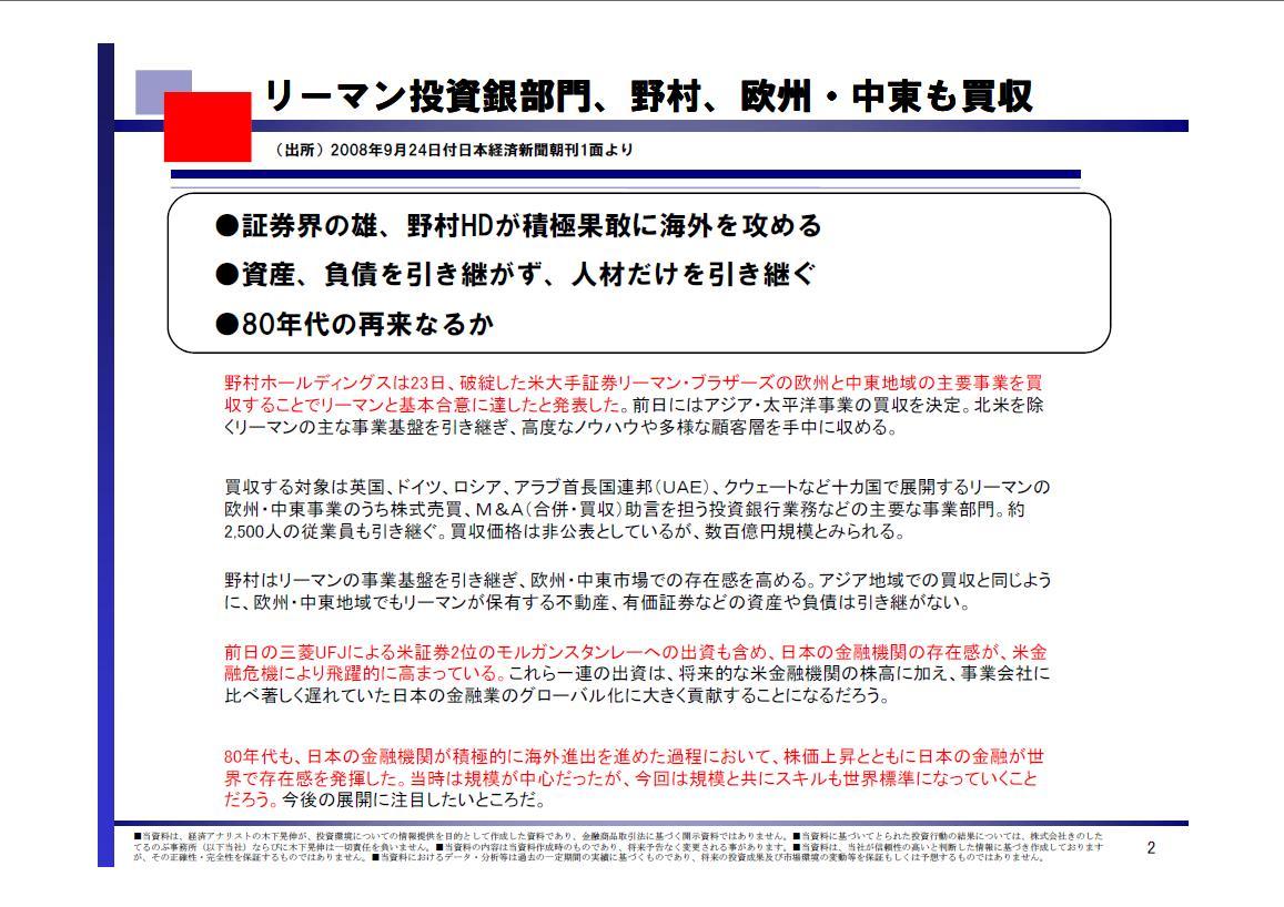 1.リーマン投資銀部門、野村、欧州・中東も買収
